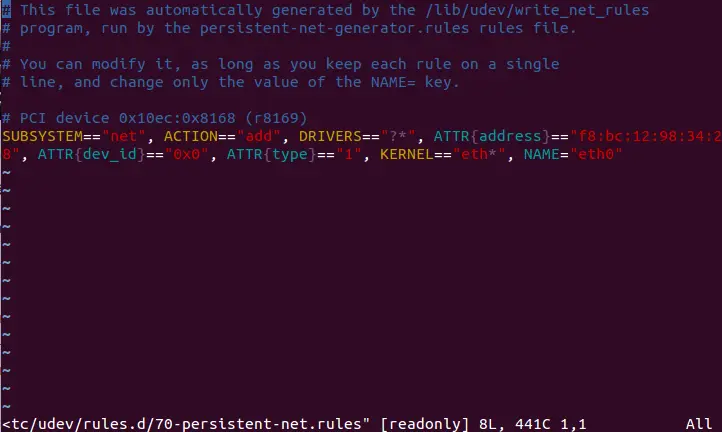 vi /etc/udev/rules.d/70-persistent-net.rules
