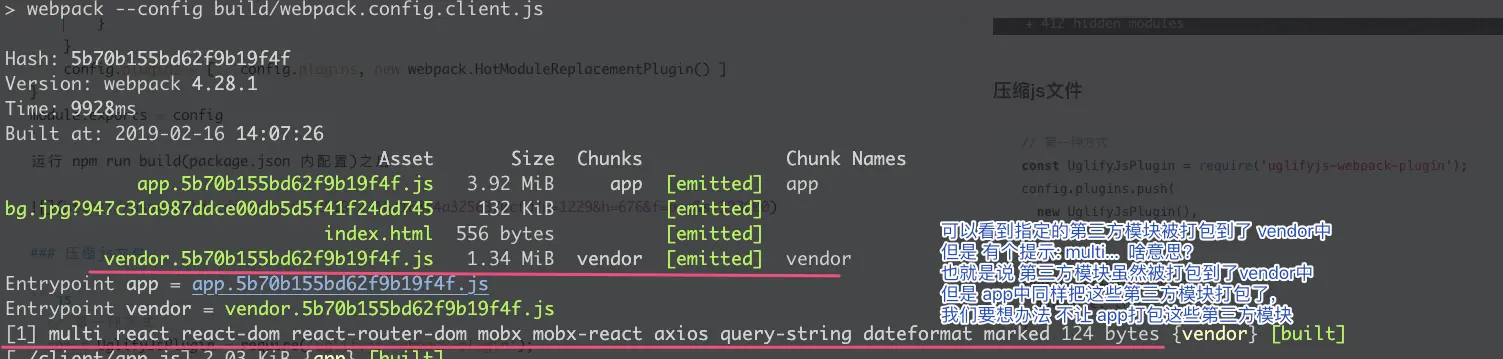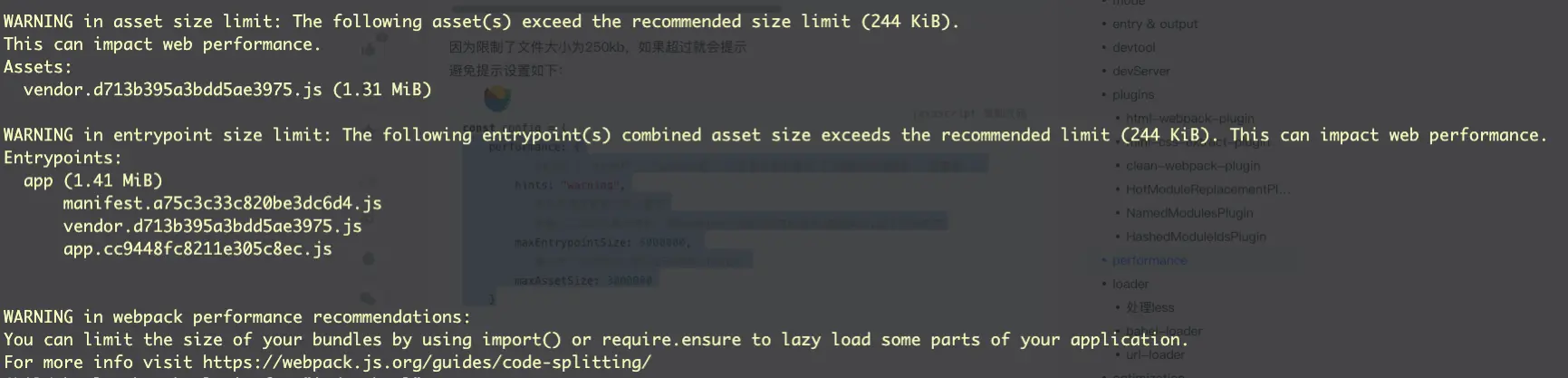 走到这步,突然发现我的配置中 mode没有改为 production, 这也是为什么 我的代码有点大。 重新打包后,多出了很多警告