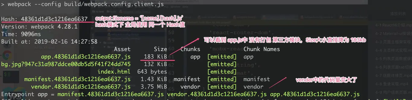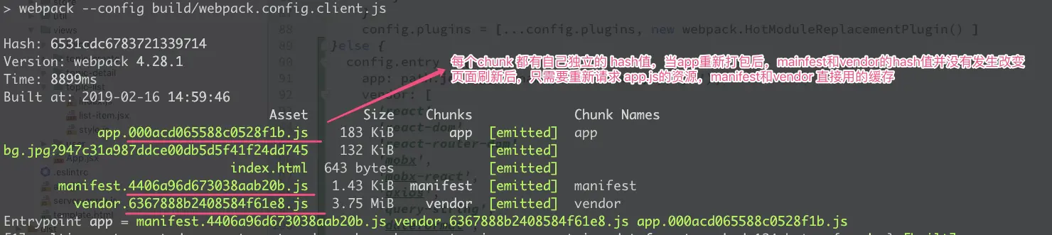 打包后生成的所有文件的hash值都是一样的,当我们修改了业务代码,导致app.js被重新打包,则 app,vendor,mainfest 三个chunk的hash全部发生改变,此时浏览器访问页面时就不能使用 vendor和mainfest的缓存了(因为文件名发生了改变),而是得重新发送http请求资源。 通过 chunkhash可以使每个chunk拥有自己单独的 hash值