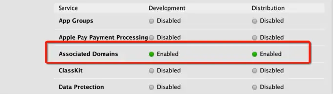 同时开发者中心的Associated Domains也会变成启用状态