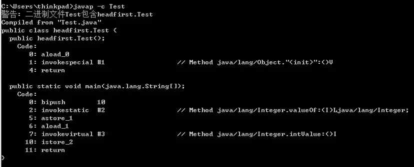 再反编译:javap -c Test.class