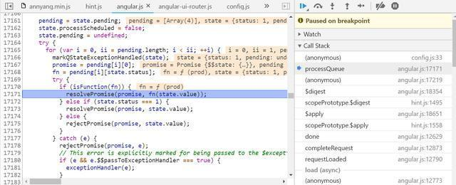 我们在Angular框架的代码里能看到一个名为processQueue的函数: