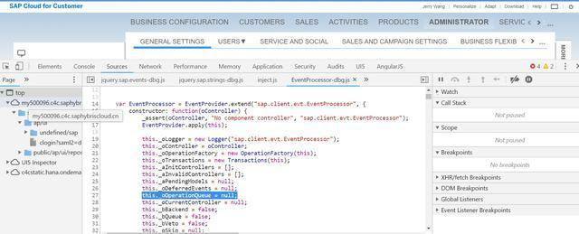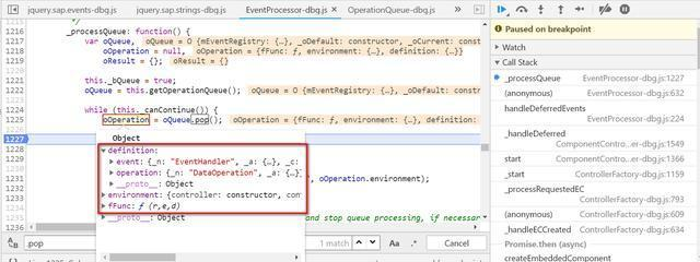 随便在C4C UI做一个点击,能触发EventProcessor的_processQueue,C4C事件队列的处理和Angular思路一样,只不过是一个while循环替代了Angular的for循环: