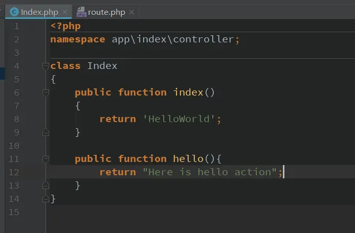我们可以来尝试一下,在Index控制器中加入hello()方法: