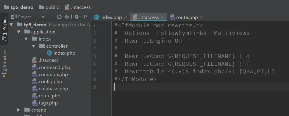 这个URL表示了访问htdocs文件夹下的/tp5_demo/public/index.php文件,这是为什么呢,我们下面来一步步分解。