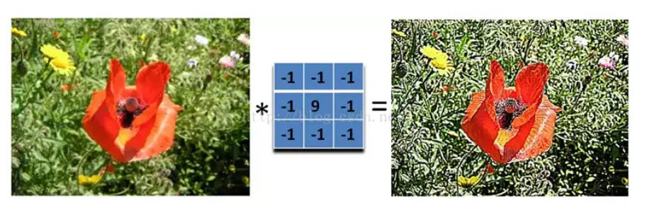 即在边缘检测得基础上,将边缘检测得到的像素值再加到原图像上,使得整个图像的边缘显得更加锐化。也就是在边缘检测得卷积核基础上,中心再加1,接着再对图像进行卷积。