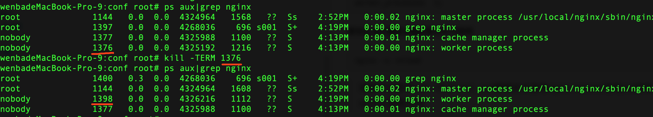 或者可以使用 kill -HUP pid,pid需要你去查看nginx master进程pid获取. 此命令针对worker进程无效