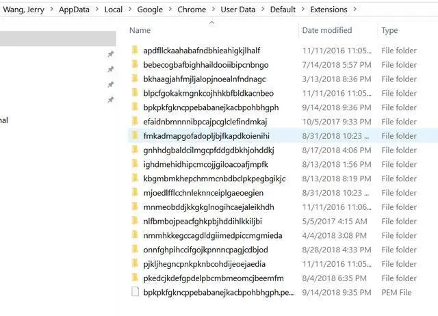 C:Users<您的用户名>AppDataLocalGoogleChromeUser DataDefaultExtensions: