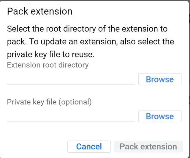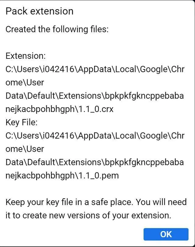 要备份这些文件夹,只需在Chrome里点击按钮“Pack extension”: