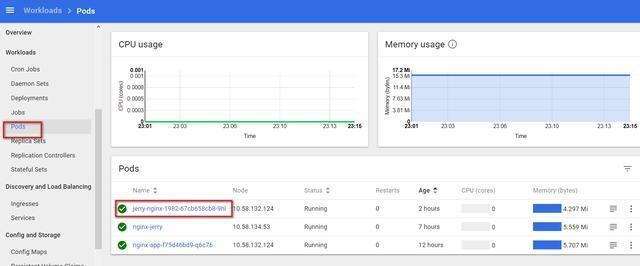 首先打开kubernetes dashboard,找到之前创建的pod: