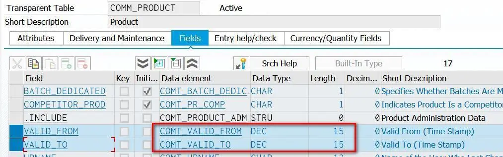 ABAP透明表里的时间戳,数据类型为dec: