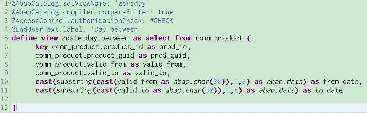 define view zdate_day_between as select from comm_product {