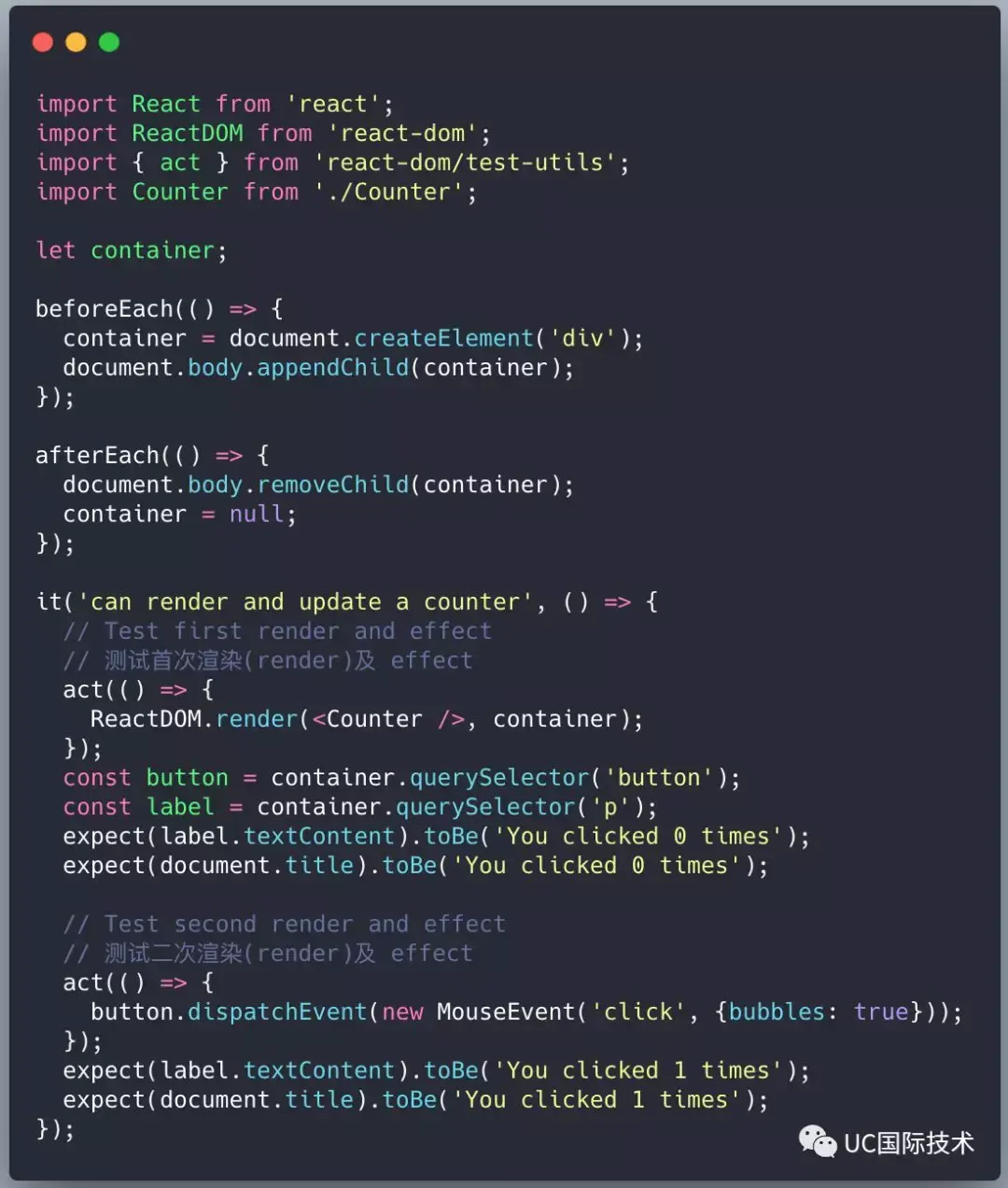 ReactTestRenderer.act()和ReactTestUtils.act()以进行批处理更新,以便测试更接近真实行为。 (@threepointone 提出于 #14744)