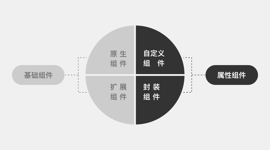 对自己负责的产品结构有所认知后,我们就需要对产品结构进行程度上的解构、分类;组件 (UI层面上的) 的归类通常分为四种:原生组件、扩展组件、自定义组件、封装组件。