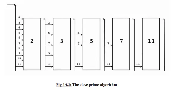 go filter(ch, ch1, prime)