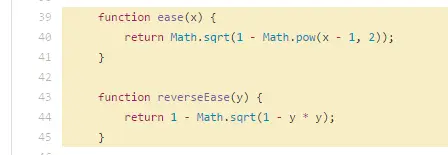 比如你有一个文件里的某一行代码写得非常酷炫或者关键,想分享一下。可以在 url 后面加上,比如,点击下面这 个 url:github.com/AlloyTeam/A…,你便会跳到 alloy_touch.js 的第 240 行。如果是想分享多行代码,也很简单:url 后面加上 #L 开始行号 -L 结束行号,比如,AlloyTouch 的运动缓动和逆向缓动函数如下面代码段所示:github.com/AlloyTeam/A…,其实也不用记忆你直接在网址后面操作,GitHub 自动会帮你生成 url。比如你点击 39 行,url 变成了:github.com/AlloyTeam/A…,再按住 shift 点击 45 行,url 变成了:github.com/AlloyTeam/A…,然后你这个 url 就可以复制分享出去了,点击这个 url 的人自动会跳到 39 行,并且 39-45 行高亮。