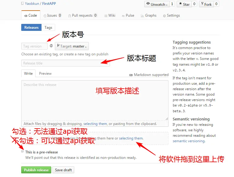在 release 界面点选 create a new release