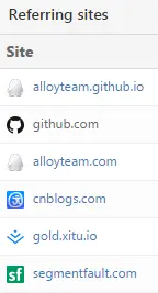 在自己的项目下,点击 Insights,然后再点击 Traffic,里面有 Referring sites 和 Popular content 的详细数据和排名。如:Referring sites