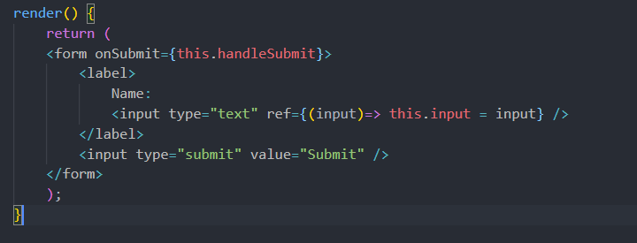 在非受控组件中我们要注意,可以使用一个 ref 来从 DOM 获得 表单值,而不是为每个状态更新编写一个事件处理程序。