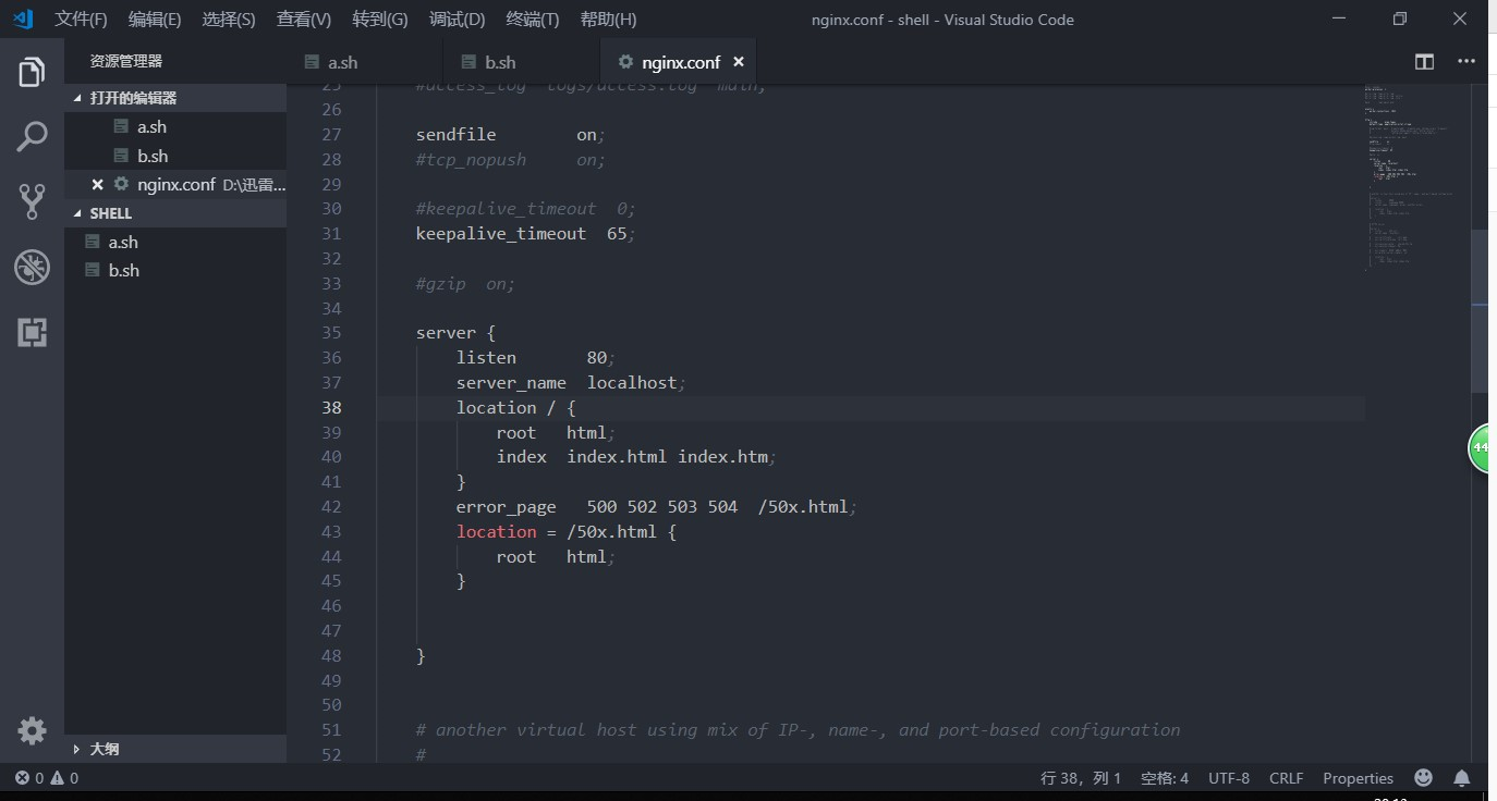 location / { proxy_pass http://a; }}好,现在我们的负载均衡就配置完成了