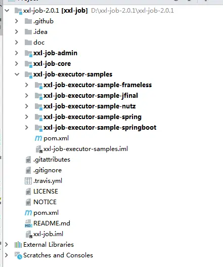 执行器项目:xxl-job-executor-sample-xxx (提供多种版本执行器供选择,现以Springboot版本为例)