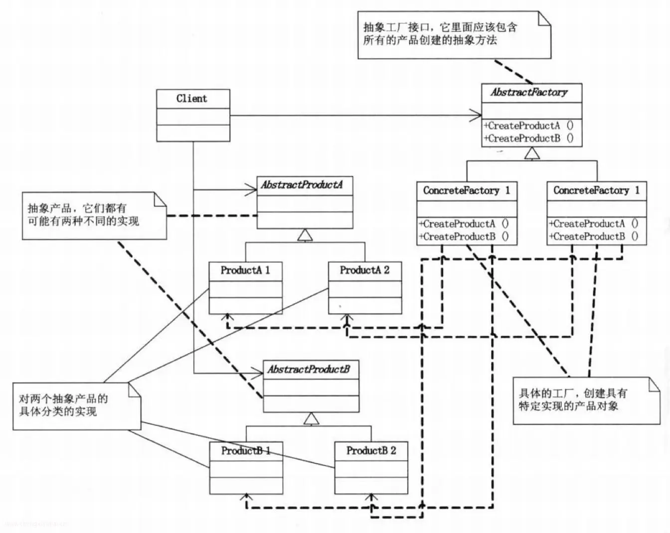 理解抽象工厂的关键在于“抽象”2字,这个抽象其实是“interface”,用来定义一个负责创建一组产品的接口,就是普通工厂必须实现某个工厂接口,这个工厂接口定义了该类型的工厂可以生产哪些产品。