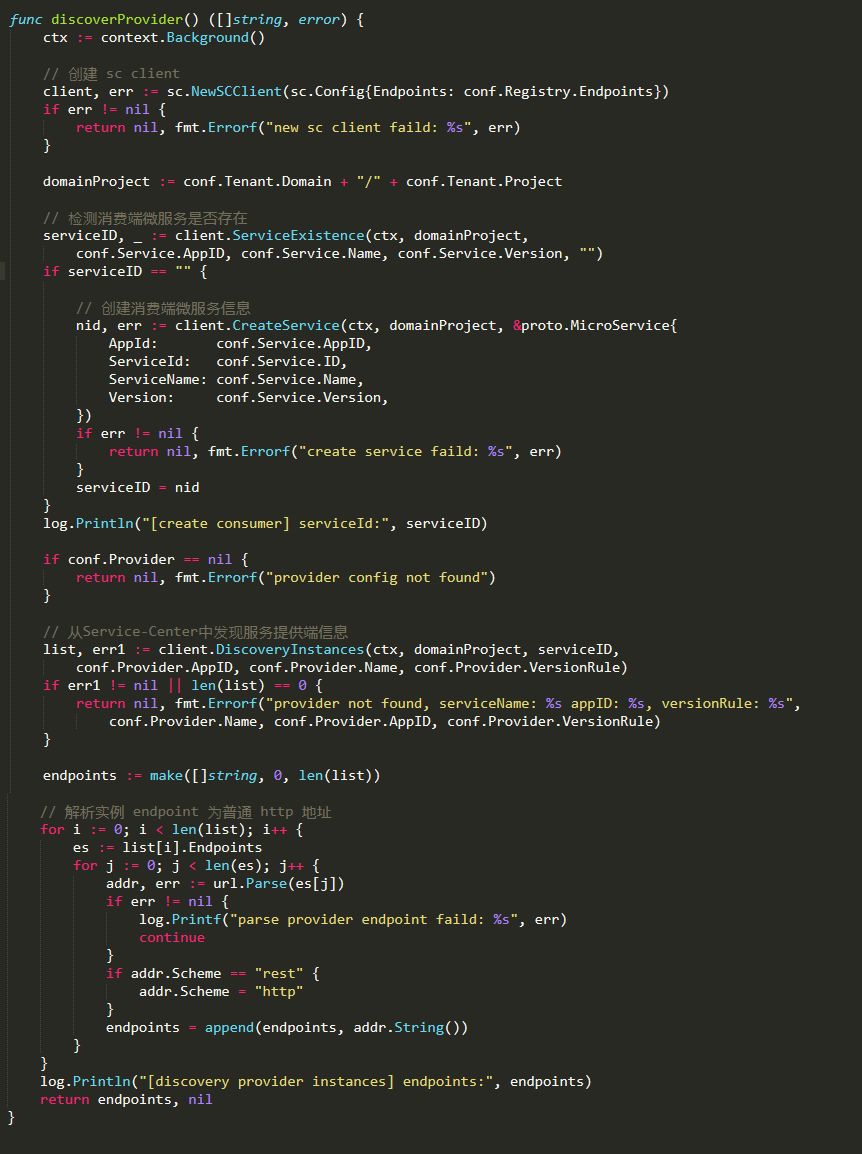 2.从Service-Center服务发现服务提供端,涉及创建服务、服务发现接口: