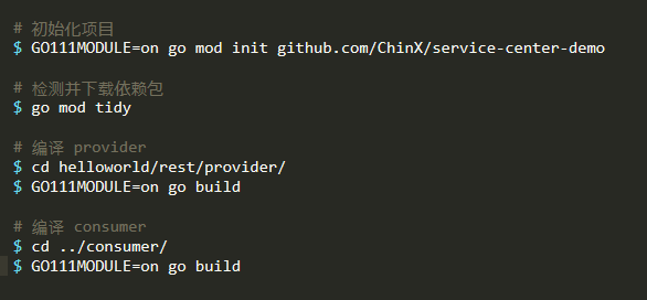 以下基于 go 1.11+ 进行构建,请检测自身 go 环境。进入 service-center-demo 目录: