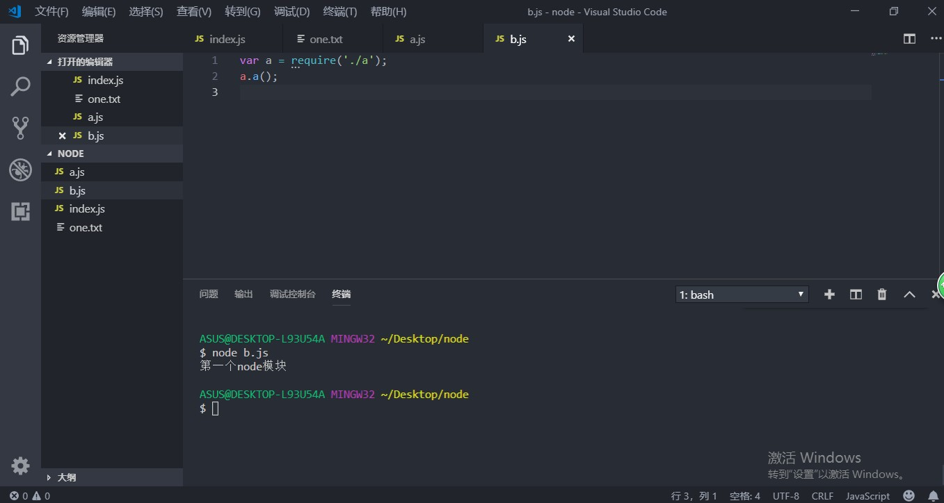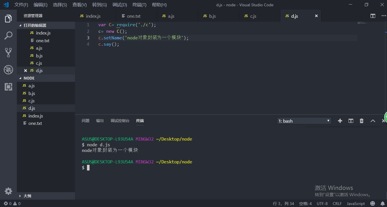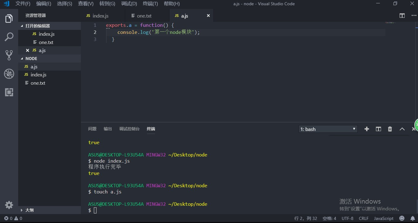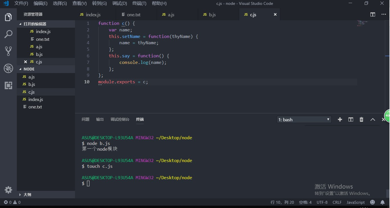 这样我们就创建了一个node.js模块,并且成功的在另一个模块中对其进行了引用。