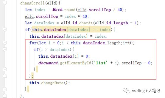 当我们第一列改变的时候,第二列开始往下都要滚动到0的位置,以此类推,需要加一个循环: