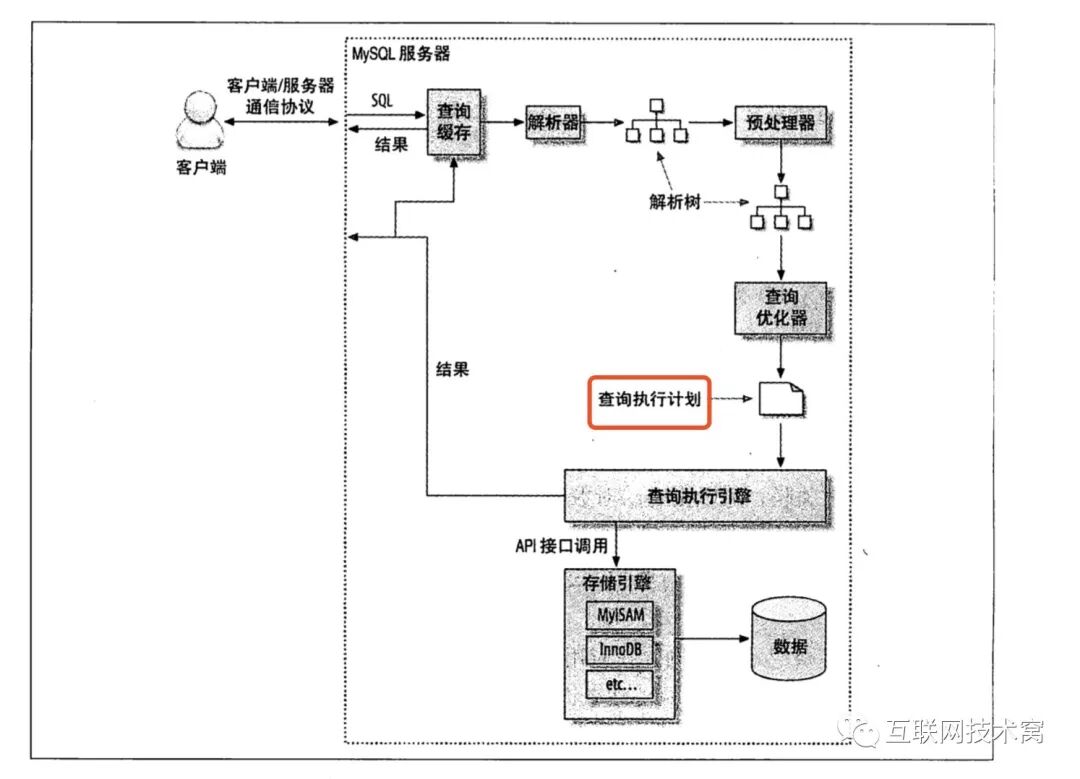 以下是mysql执行查询的整个过程, explain可以查看图中标红部分,