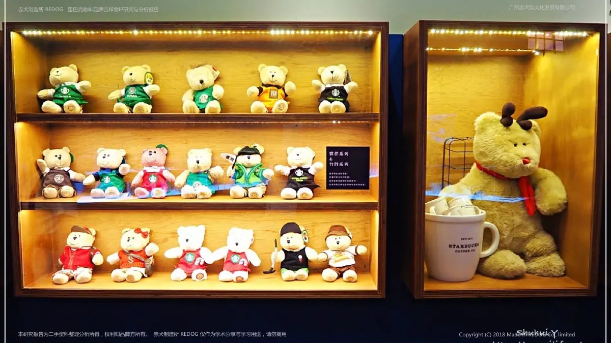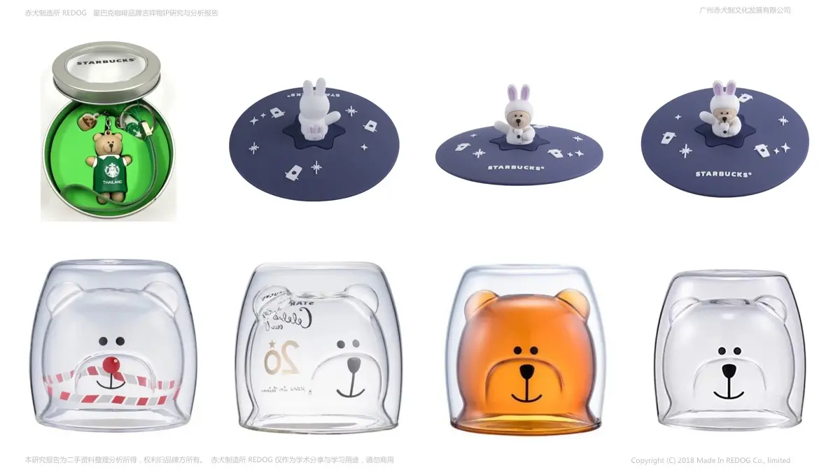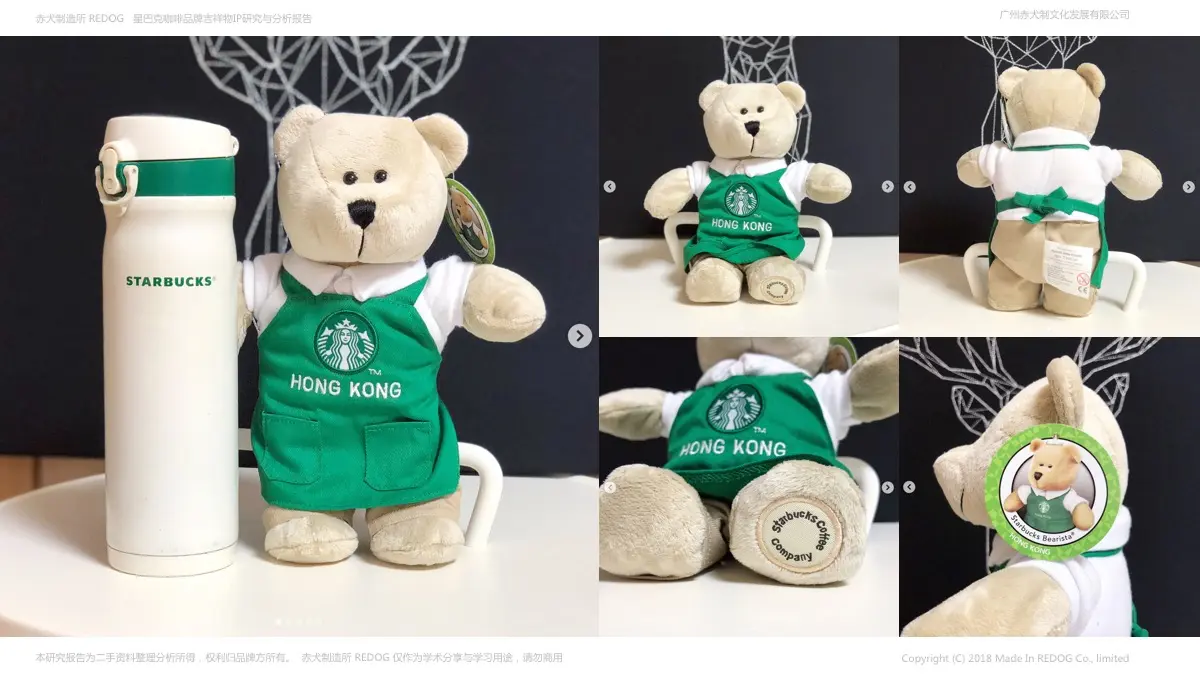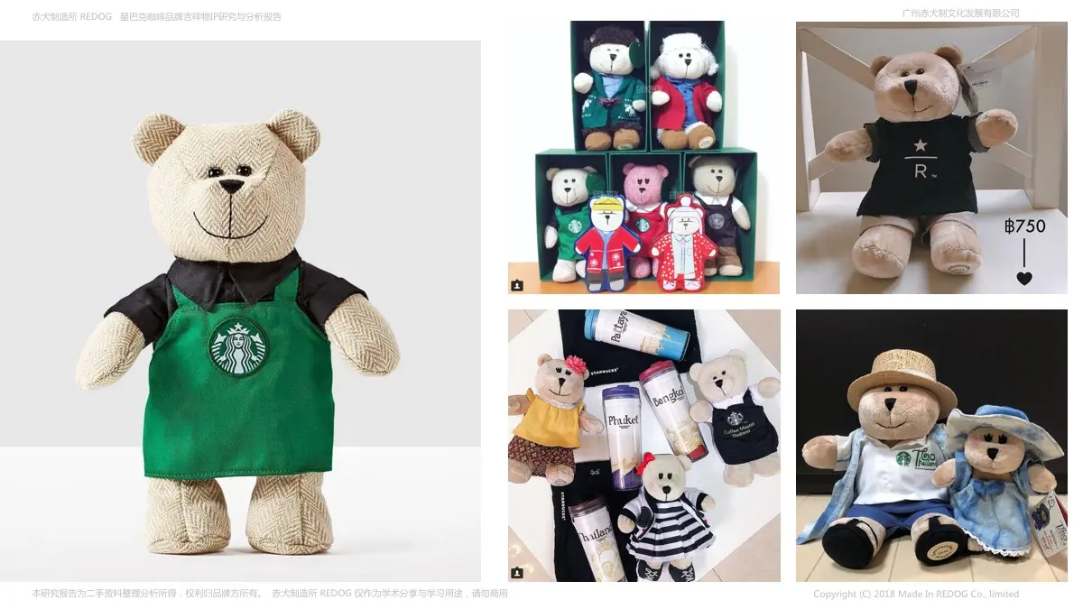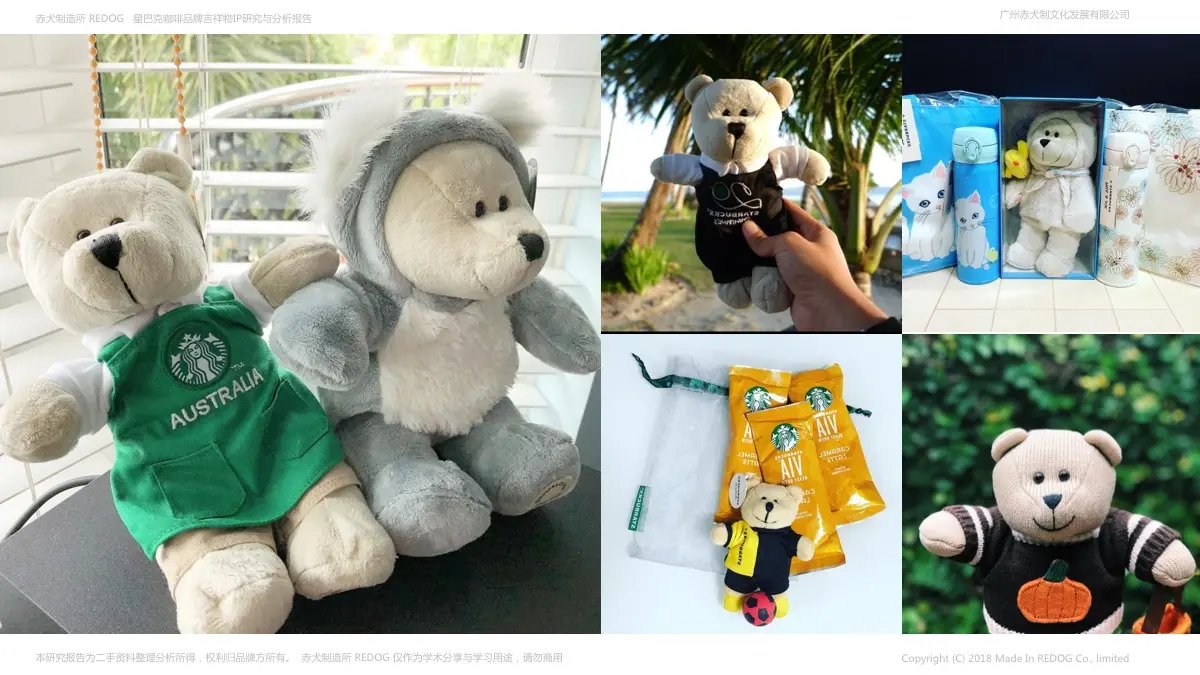 3:拥有小熊吉祥物的星巴克,就拥有了卖萌卖趣的周边呈现;品牌吉祥物IP的周边开发通常有两种方式:1是开发杯具咖啡周边等产业相关品牌促进品牌文化的宣传,2是最重要也是最关键的用法就是做成毛绒公仔促销;