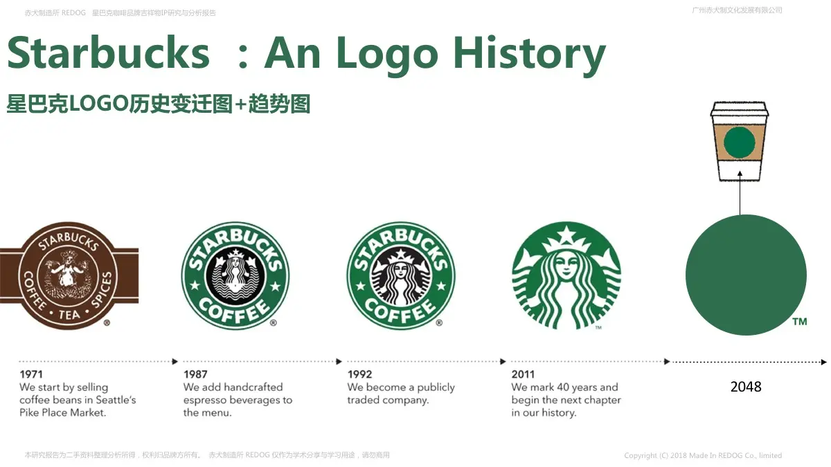 回看网友调侃的这张趋势图,纯粹的一个圆当LOGO看来并不需要在2048年才实现啊!PS:微信表情包是不允许出现商家LOGO的,所以才用了圆和绿色抽象识别,不过明显星巴克多年的运营和视觉印象能撑得起纯圆担当识别;