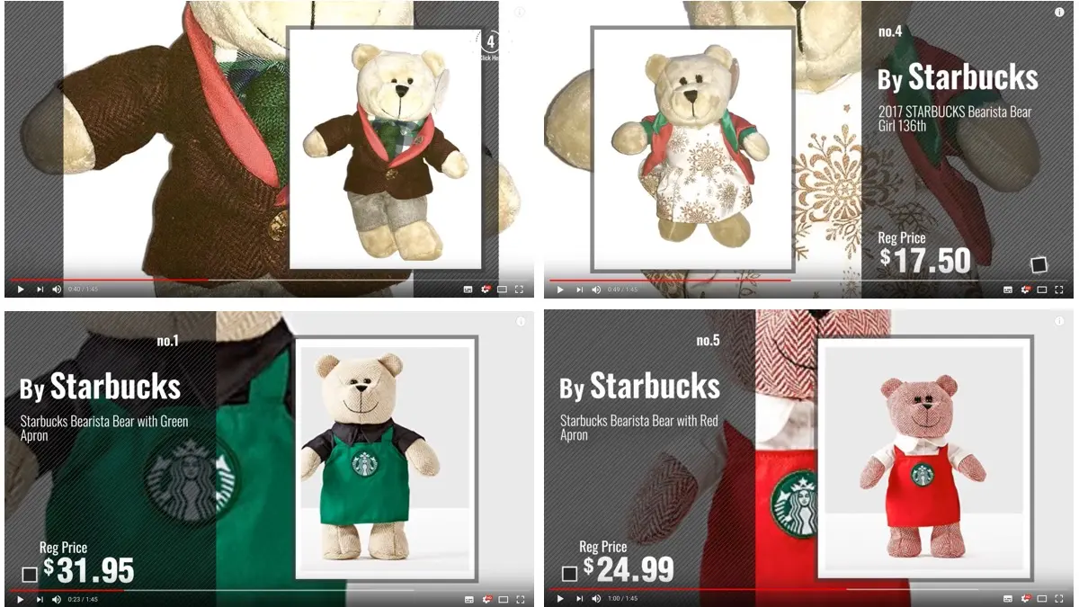 视频中展示了星巴克具有收藏价值的熊宝宝https://www.youtube.com/watch?v=TbFDOTbno2Y