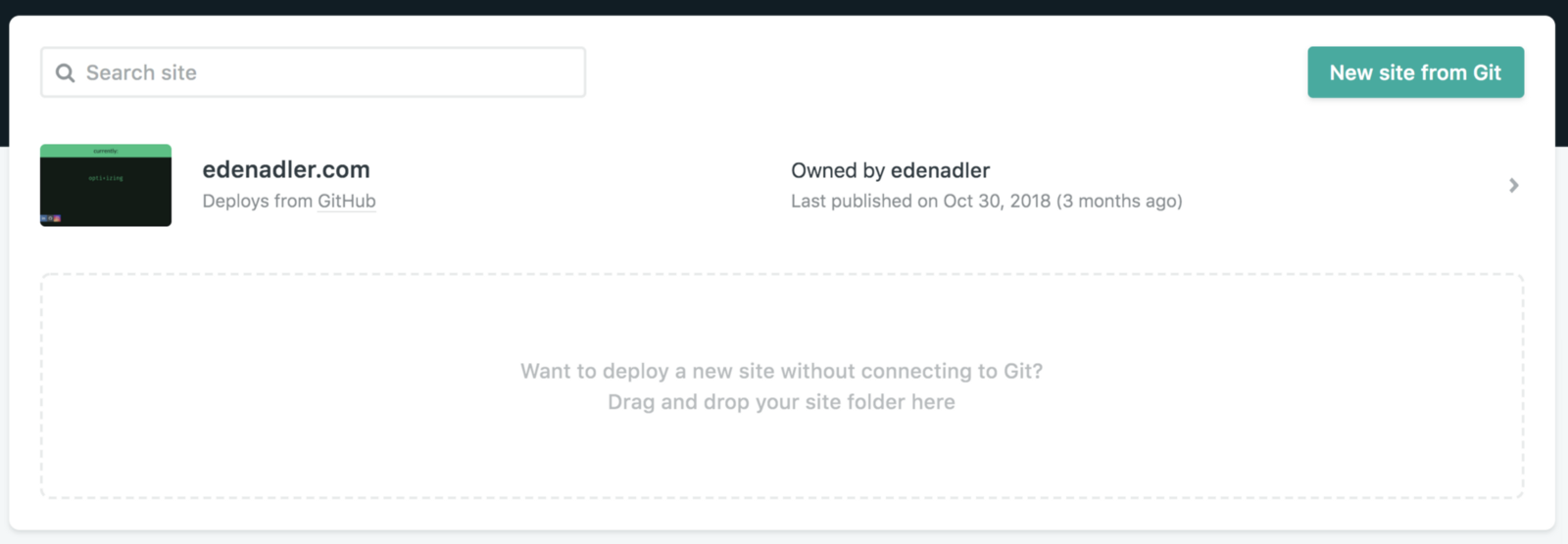 If you choose not to link your account, or were like me and just wanted to try it out the first time, you can easily drag and drop your project to trigger the deploy.