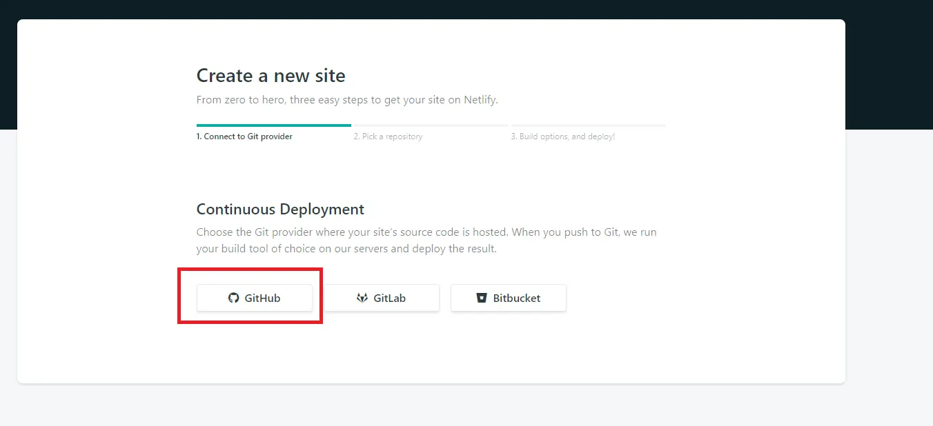 After sign up, select new site from Git and Choose GitHub as your Git provider: