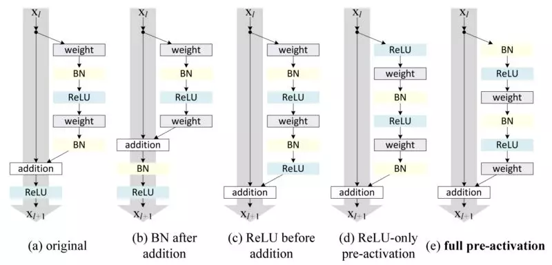 ResNet 最大的特点即解决了反向传播过程中的梯度消失问题,因此它可以训练非常深的网络而不用像 GoogLeNet 那样在中间添加分类网络以提供额外的梯度。而 ResNet 是由残差模块堆叠起来的,一般根据需要可以定义几种不同的残差模块: