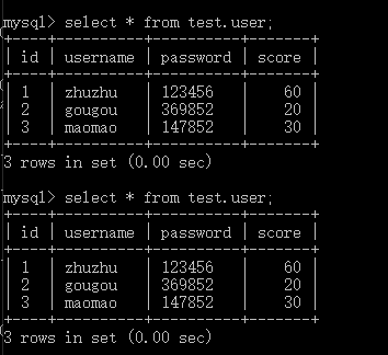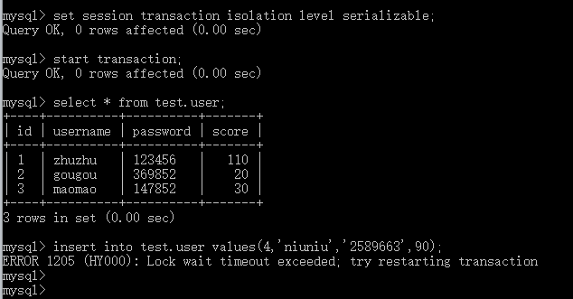 事务1再次查询表数据,表数据不变。解决了不可重复读问题,但不能解决幻读。