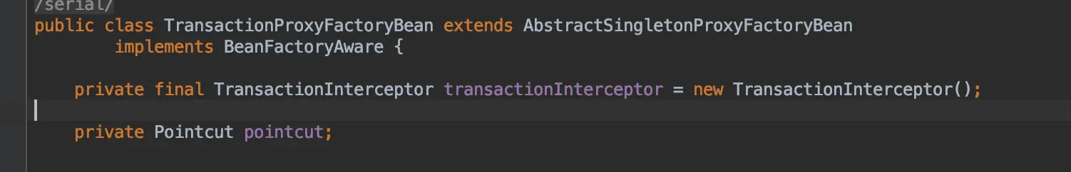 - 一种在TransactionProxyFactoryBean中默认的TransactionIntercetor