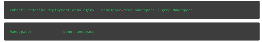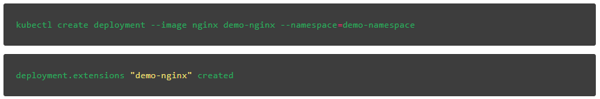 要将操作应用于不同的命名空间,我们必须在命令中包含—namespace=这一选项。下面我们在demo-namespace命名空间上创建具有相同名称的部署: