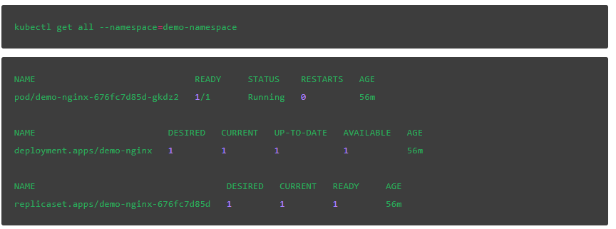 这说明我们已经在demo-namespace命名空间创建了另一个名为demo-nginx的部署。