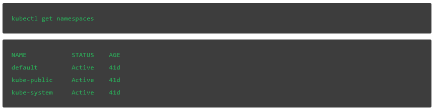 要显示集群中可用的所有命名空间,使用kubectl get namespaces命令: