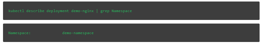 验证我们的kubectl describe命令现在默认使用demo-namespace,它会请求我们的demo-nginx部署而不需要指定命名空间: