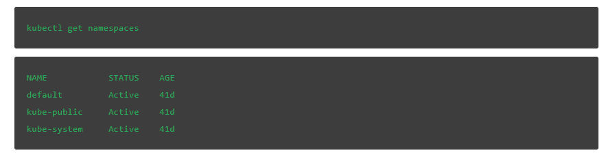 在我们进行创建命名空间之前,先讨论一下Kubernetes是如何自动设置它的。在默认情况下,新的集群上有三个命名空间: