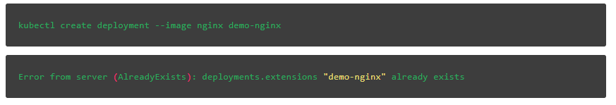 如果我们尝试再次使用相同的名称创建部署,会得到命名空间冲突的错误。