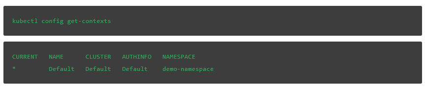 我们可以在此查看context配置来验证当前是否选择了demo-namespace: