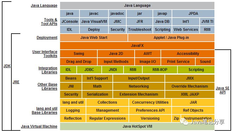 2、Java API类库中Java SE API子集和Java虚拟机这两部分统称为JRE(Java Runtime Environment),JRE是支持Java程序运行的标准环境。