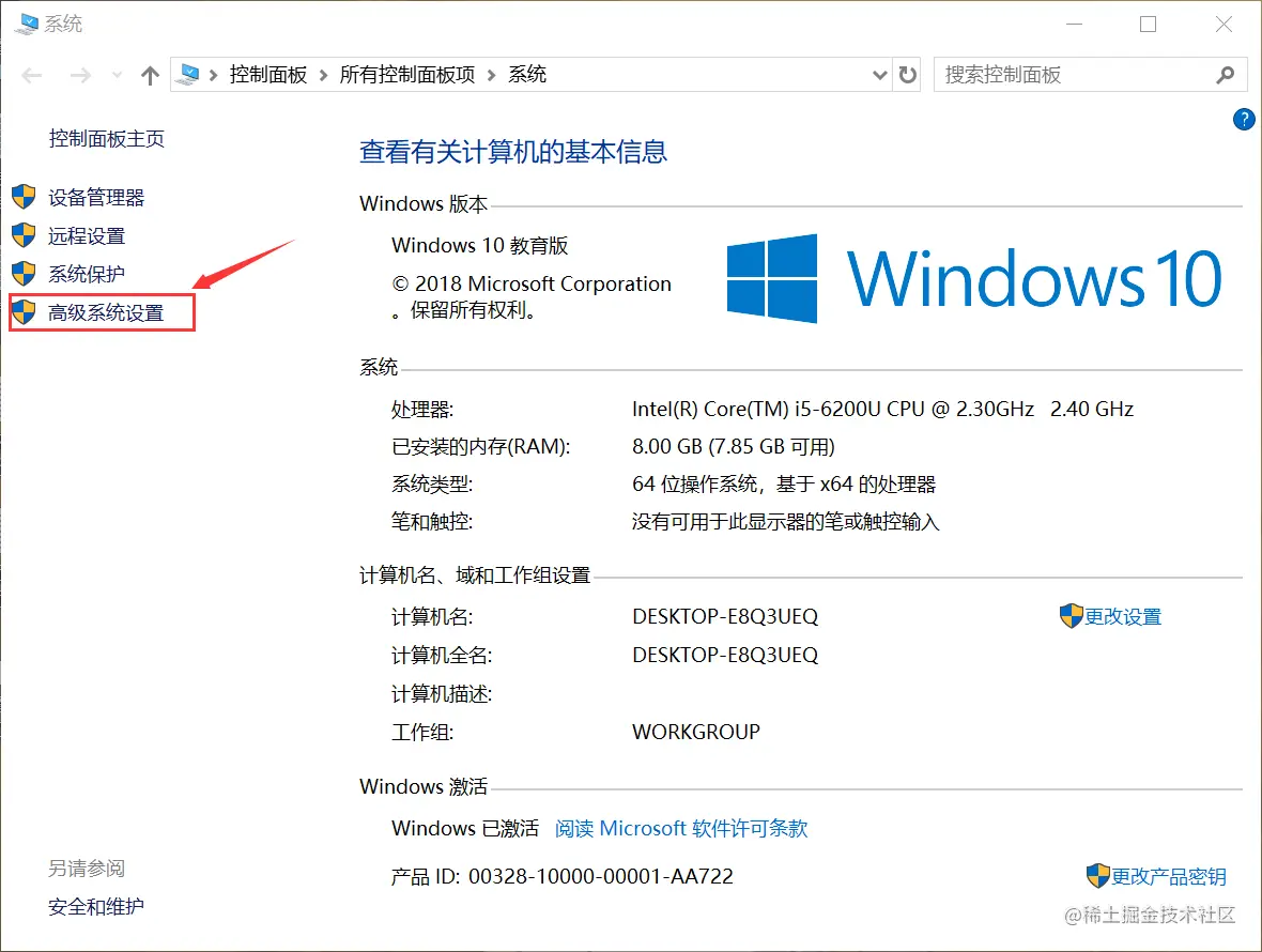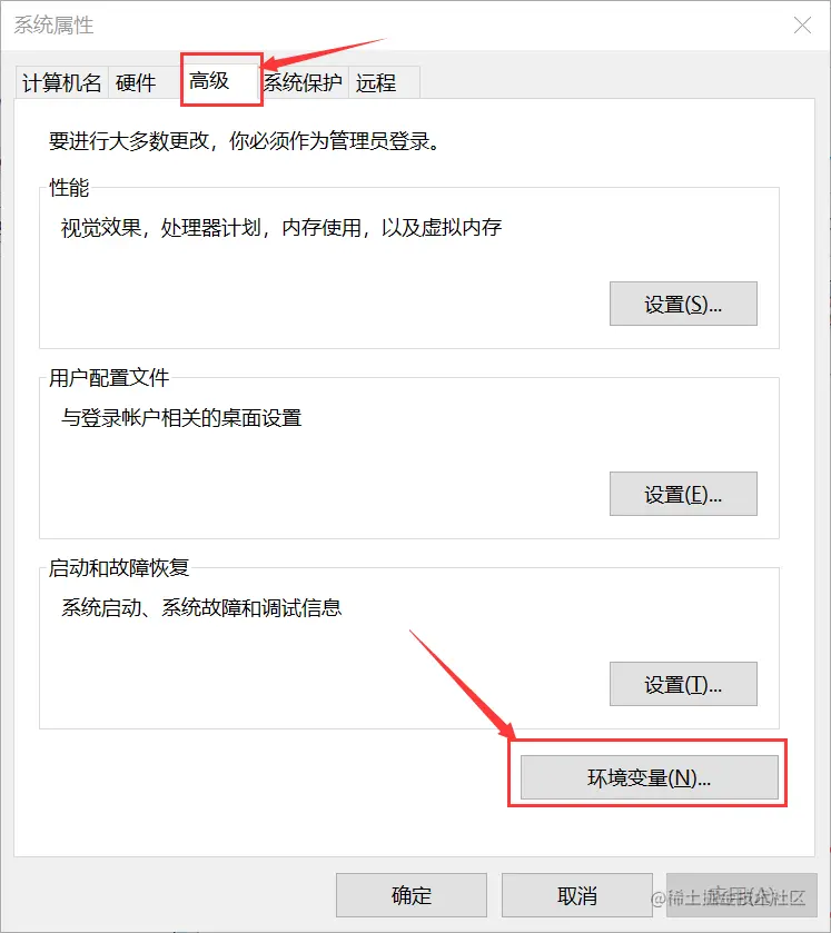 3.弹出框里面选择高级选项,下面有环境变量的按钮