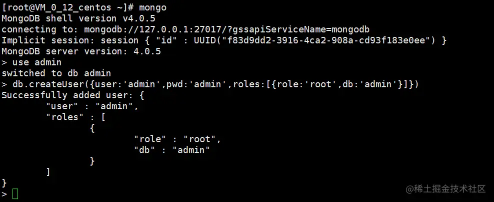但在日常工作中我们不可能把数据库设置为免认证登录并暴露在公网下,所以我们需要为数据库添加用户名和密码,具体操作如下: