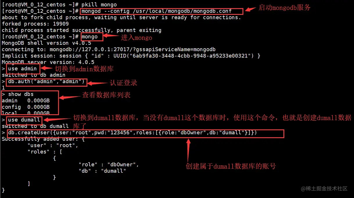 mongod --config /usr/local/mongodb/mongodb.conf -auth //开启授权启动